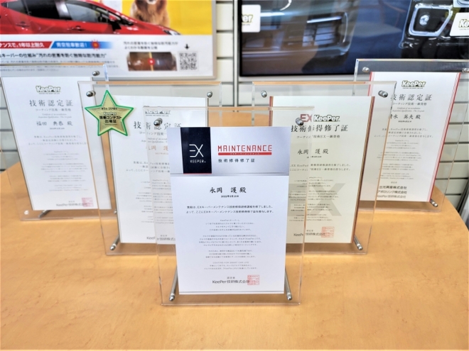 他店のキーパープロショップと比較しても、多くの資格者が在籍している為、安心してお客様の愛車をお預け頂けるかと存じます。